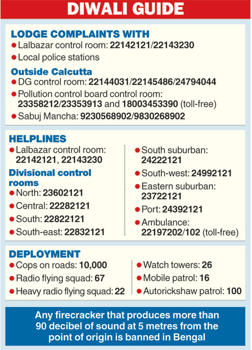 “We are trying our best to contain the noise menace on Kali Puja/Diwali night. Our officers are going to various schools or joining walks to spread the message of quiet Diwali,” police commissioner Surajit Kar Purkayastha had said on Tuesday.
