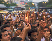 | A candlelight campaign at Esplanade on Sunday evening in favour of the Tata factory in Singur. Picture by Bishwarup Dutta. |
