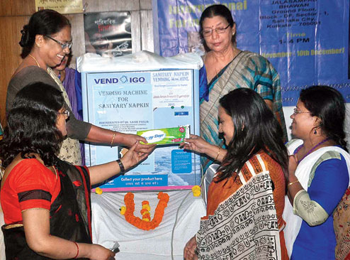 The machine that vends out a pack of three sanitary napkins for Rs 10 was inaugurated by Sunanda Mukherjee, the chairperson of the state women’s commission along with other members of the body.