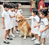 Fear was the last thing on the minds of the little girls as they befriended the dogs. “I have dogs at home. But they are not real. This one is. See, see he is scratching,” exclaimed Siya Goenka, an Upper Nursery student who refused to part with Mickey the golden retriever.