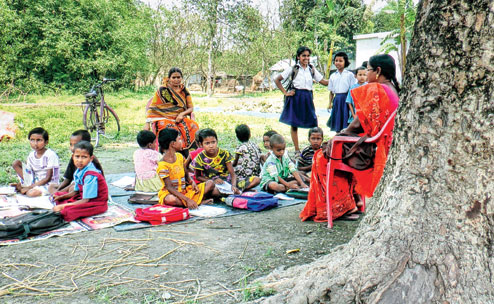 When told that students and teachers have been compelled to sit under a banyan tree in all seasons to study, Sarkar said: "It is possible that classes are being held in the open because of the hot summer."