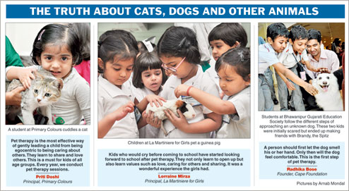 “Stress has become a part of our lives and even children are not spared. Having a pet is a great stress-buster,” said Radhika Bose, the founder of Cape Foundation, which has conducted meet-and-greet sessions with pets for students at several city schools.