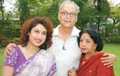 | Actor Soumitra Chatterjee is flanked by Satabdi Roy (left) and Sabitri Chatterjee: Cradle crew. Picture by Pradip Sanyal |