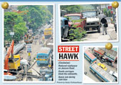 Goods carriages parked on the stretch between Jaya cinema and Jessore Road further narrow the road width. Under normal conditions, plying of trucks hamper the smooth running of traffic but during repairs, they make the situation more difficult.