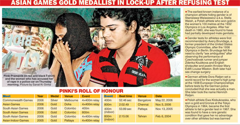 Pinki Pramanik, an Asian Games gold medallist from Purulia who was for a while hailed as the next P.T. Usha, has been accused of gender fraud and rape by the woman she had been living with for two years.