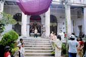 | Ketaki Sheth (right foreground, wearing a cap) shooting the dazzling Durga image in the thakurdalan of the Mitra family of Dorjipara in north Calcutta. |