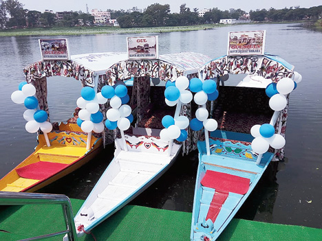 At present, three shikaras have been brought in from Kashmir for rides on the 50-acre artificial lake - Saheb Bandh.