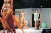 The action on the ramp started off with a line of assymetrical skirts ? long at the back and short in front ? in rich hues, mostly imbibing gold, silver and bronze textures. Intricate embroidery and striking embellishments in the form of crystals, beads and glasswork completed the look of the tight-fitting bustier tops that provided a contrast to the flowing fabrics below the waistline.