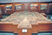 | A model of the monastery site excavated at Jagjivanpur, a village in Malda. (Below) A Varahi, the feminine equivalent of Vishnu, found at Panna in West Midnapore. Picture by Sanjoy Chattopadhyaya |