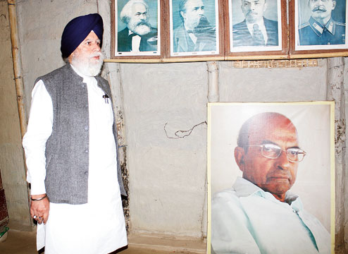 | SS Ahluwalia at the home of Naxalite leader Kanu Sanyal, whose photograph rests by a wall. Picture by Kundan Yolmo |