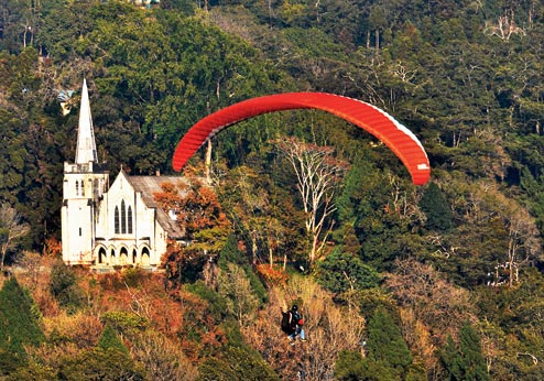 The paragliders will take off from the Anee Gumpa hilltop situated at the height of 1450m and land on the Khel Gaon ground at Reshithang. The Khel Gaon complex is about 15km from Gangtok towards Ranka. The distance between the take-off point and the landing spot is about 1km as the crow flies.