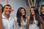 Back to Sush, the actress gave a glimpse of her painting prowess by doing a quick sketch of the facial contours of a goddess and signing “Durga, Durga” in the corner. But it was Sushmita’s presence that made all the difference to the party.