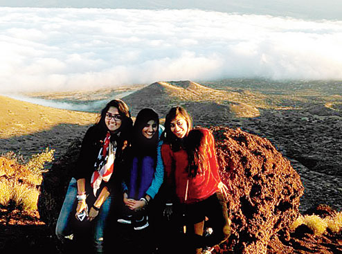 (From left) Adwitiya Dawn, Shruti Keoliya and Khushi Goenka atop Mauna Kea