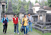 | Youngsters check out the South Park Street Cemetery, where Gorosthanay Sabdhaan was shot, on Tuesday afternoon. (Sanat Kr Sinha) |