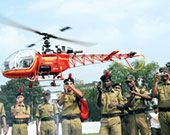| Young men in uniform click pictures of a miniature remote-controlled helicopter at Fort William on Sunday, the 62nd Raising Day of the National Cadet Corps. Chief guest Srikumar Mukherjee, the state civil defence minister, announced that a chapter on disaster management would be included in the NCC syllabus. “For the first time in the state, six NCC cadets have qualified for the post of army officer. They joined the army through the National Defence Academy,” said Mukherjee. Former army chief General (retd) Shankar Roy Chowdhury gave away prizes. Maj-Gen. M.P. Singh, the additional director-general of NCC, accompanied the young cadets when they were seeing the military equipment on display. Picture by Amit Datta |