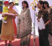 | Namita Mehta, president, AWWA, 20 Mountain Division, gives away a prize to one of the baby winners |