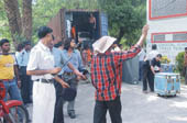 | Lake police had to step in on Monday morning to free a truckload of equipment of a Mumbai firm that did the sound for Sunday’s Satriani show. The truck was detained at the Rabindra Sarobar stadium over a dues dispute. Picture by Sanjoy Chattopadhyaya |