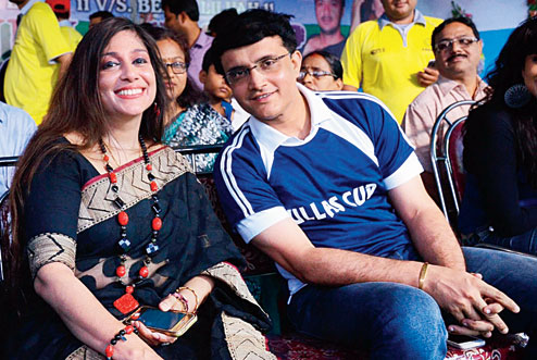 Vaishali, the daughter of late Jagmohan Dalmiya and now Trinamul candidate from Bally, was joined by several other Trinamul leaders from the district on the stage as Sourav skippered a Players' XI to victory against an Artists' XI led by Tolly star Jisshu Sengupta.