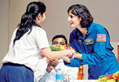 Astronaut Sunita Williams fielded questions from school students, talking about everything from her pet dog who she dearly misses when in space to what keeps the International Space Station, of which she is commander, protected. Young Metro presents excerpts from the interactive session at Science City auditorium on Tuesday