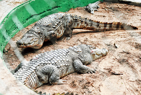 One of the crocodiles weighs about 250kg and seven people were needed to carry it from its enclosure at the Badu zoo to a van when it was being shifted on Saturday. Three of the crocodiles are large and fat while the rest are small, said a source at the zoo.