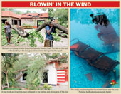 Falling trees and branches inflicted the worst damage on Lake Club. “Some trees fell on the boundary wall railing and broke it. Asbestos sheets over the staff quarters and glow signs were blown off,” said honorary joint secretary Subrata Guha.