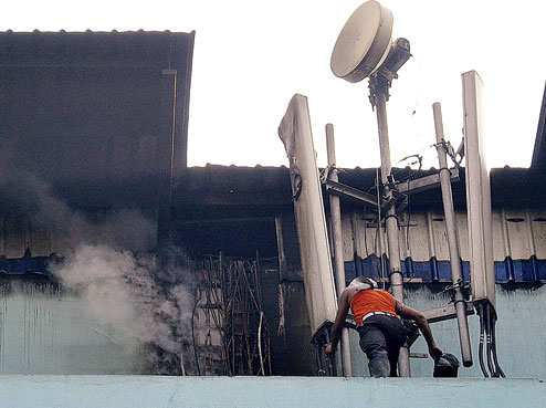Experts in communication technologies said such towers, fitted with high-intensity new-age transmitters, usually had a UPS unit and an air-conditioner. A short circuit in the installation can always result in a spark, which can cause a fire.