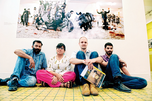 | Kaushik Ramaswamy and Tanvi Mishra, curators, Friso Maecker, director, Goethe Institut Max Mueller Bhavan Calcutta, and Rahaab Allana, editor of PIX, at Studio21 on Friday before the opening of the exhibition on photographers of Iran on Saturday. (Sanjoy Ghosh) |