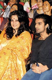 | Catcalls and more catcalls. What else can happen when Ishaa Koppikar moves to Company and Kaante. The Khallas girl kicked up the oomph factor with a string of raunchy item numbers and all that razzle-dazzle Rising star Koel Mullick took the stage for the first song-and-dance number of the evening with co-star JeetRanjit Mullick, who received a special award for his contribution to Bengali cinema, gave away the Best Actor award to Sabyasachi Chakraborty. The deafening applause showed just what Feluda means to the massesMiss Mallika may have stolen the thunder in Murder, but screen-hubby Ashmit Patel didn?t go wholly unnoticed. Little wonder then that the Best Debutant had one of the best seats in the house, beside Moon Moon SenCongrats! Said Saif Ali Khan to producer Vidhu Vinod Chopra, after he bagged the Best Bollywood Film award for Munnabhai MBBS, as Vidya Balan smiled on. Soon, it was the Hum Tum lad?s turn to pick his Best Actor?s prize. ?I never knew I was so sentimental until a man in Siliguri called me Didi ka ladka. If it were not for my mother, I would have never been in this industry. So, I dedicate this to her,? said the son of Sharmila Tagore His witty asides often had the crowds in splits, while she perked up the glam quotient. MCs Derek O?Brien and June kept the show going smoothThe prizes won and lost, the party crowd headed straight for ITC Sonar Bangla where a lavish spread of food and cocktails awaited all. Sreela Majumdar, June and Sudipa (from left to right) seemed more footloose and fancy-free than famished The dance floor is too cramped, the sip-and-bite table is more cosy. Chaiti Ghoshal, Deboleena Dutta and Arunima Ghosh settled down for a chat and to catch others in actionHe was one of the first to hit the floor and the last to leave. Parambrata Chatterjee, in red, was a great hit among the girlsIt was Babul Supriyo who coaxed Jeet into an impromptu jig on stage to a Kishore Kumar track, but the macho man stumped the Bollywood singer by snatching the mike and rounding off the song. The two got into the groove yet again, this time at the Pala party Arjun Chakraborty and wife Nilanjana didn?t need much coaxing either to join the fun club. Pictures by Aranya Sen and Pradip Sanyal |