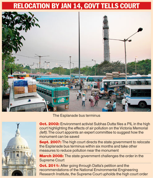 The government on Friday submitted in Calcutta High Court that it would shift the Esplanade bus terminus more than 3km from the Victoria Memorial Hall by January 14 in compliance with an order of the court.