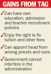“We will urge the commission to ensure that deserving schools are not deprived of the status,” said Faustine Brank, a member of the Association of Christian Schools in West Bengal and president, Bangiya Christiya Pariseba, an organisation of church representatives running educational institutions in the state.