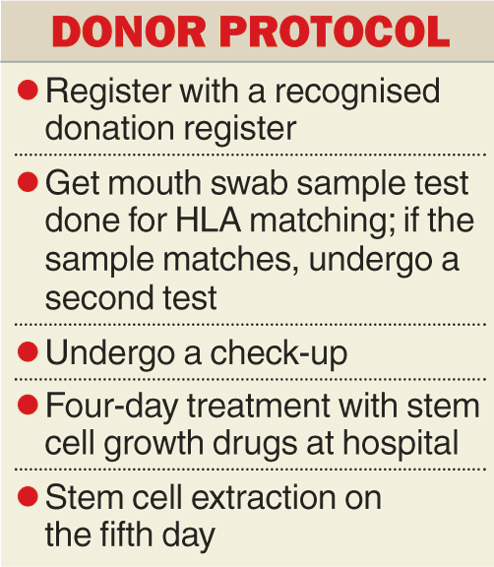 A potential donor has to be registered with a blood stem cell donation facilitator. After filling in a simple form, a mouth swab is collected for HLA typing. If it matches that of the person needing a transplant, the donor gets a call from the organisation.