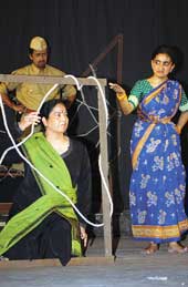 | The extraordinary life and works of Urdu writer Saadat Hasan Manto is the theme for Rangakarmee’s forthcoming production. Usha Ganguli (foreground) conducts a dress rehearsal for Badnam Manto, the first of a three-episode collage portraying Manto and his relationships with women. Picture by Aranya Sen |
