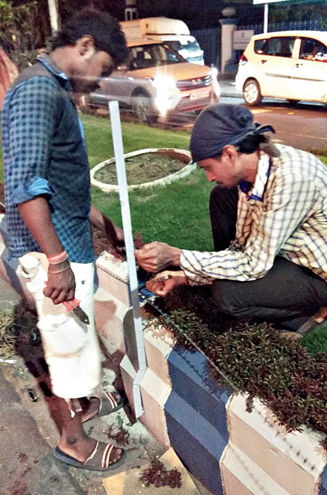 On Monday evening, some men were spotted installing barbed wire fencing on both sides of the median divider from the Bhikharam island to the Kalyan Jewellers island.