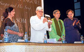 | Reba Som with governor Gopalkrishna Gandhi, Visva-Bharati vice-chancellor Rajat Kanta Ray and former vice-chancellor of the university, Sabyasachi Bhattacharya, at the launch; (below) Tagore with Victoria Ocampo (Picture by Sanjoy Chattopadhyaya) |