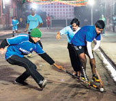 | A hockey match at Bow Barracks on Thursday after the release of the book edited by (picture below) Errol O’Brien. Pictures by Pabitra Das |