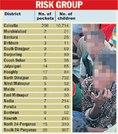Calcutta has the highest number of street children, 10,714, concentrated mostly in 208 pockets.