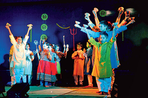 Street children lit up everyone’s faces on Saptami in BF Block. About 30 children put up two dance performances that entertained residents and visitors alike. The children were trained by the local branch of the dance school Twist ‘N’ Turns and the dance programme was organised by them as a part of their 10th anniversary celebrations.