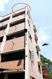 | The terrace (circled in red) from where Arkaprabha is believed to have jumped to his death. (Pradip Sanyal) |