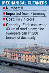 The city civic authorities will soon deploy eight more mechanical sweepers to suck up dust — responsible for the haze and smog — and small trash from the roads.