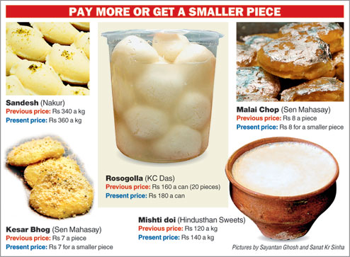 Although some of the famous names like Balaram Mullick and Radharaman Mullick and Bhim Chandra Nag have managed to keep prices unchanged, those in the business say it is just a matter of time before they do.