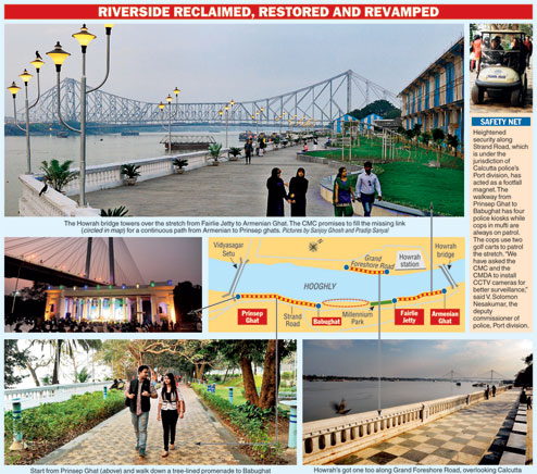 What: The newest and the prettiest stretch, it was opened on February 7. Built from scratch, the pathway stands on pillars and juts about 10m into the river. It enables walkers to reach within 500metres of the Howrah bridge.