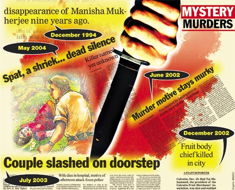 • Flashback: Taj Mohammed, controller of a traders’ union in Jorasanko, was found dead with multiple stab injuries in his office in September 2003. Someone had stabbed him in the face at least 10 times, apart from 20 more stabs all over his body.
