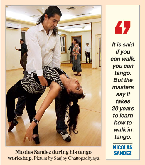 Nicolas Sandez from Buenos Aires was in the city at an invitation of TangoConscious, an outfit promoted by Mumbai-based Aditi Jaiswal, to give lessons in tango.