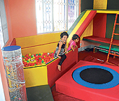 Two-year-old Tiyas Chakraborty loves the slide that leads to a playing area full of balls. Her classmate, Pritha Gupta, who suffers from pervasive developmental disorder, likes to press her cheek against the vibrating bubble tube as she gazes at the toy fish floating in the water inside.