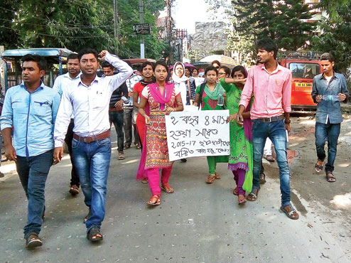 Cooch Behar, Oct. 12: Over 200 students of different private institutes that offer two-year Diploma in Elementary Education (D.El Ed) today took out a march here to protest the delay in publishing the results of their first-year examination and announcing the exam dates for the final year.