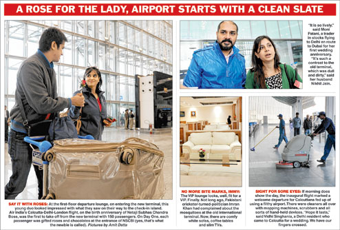 Rohit and wife Sheetal make frequent trips to Calcutta to visit relatives. The couple took the integrated terminal’s official debut flight — Air India’s Calcutta-Delhi-London service — and left the sprawling facility suitably wowed.