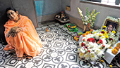 | Anita Roy at her home on Sunday. Her mother-in-law Dipti’s picture is in front of her. (Amit Datta) |