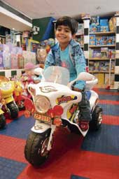The Harley Davidson model is the eye catcher. “Due to immense exposure to the media, today’s kids are aware of what’s going on around them even at the age of three. When we were small we would ask for bicycles, but children today want to ride bikes. I have had four-year-olds walk into my store with their parents, asking for the kind of stuff “John uncle” rode in Dhoom,” smiles Gautam Jatia, CEO of Landmark, on Lord Sinha Road.