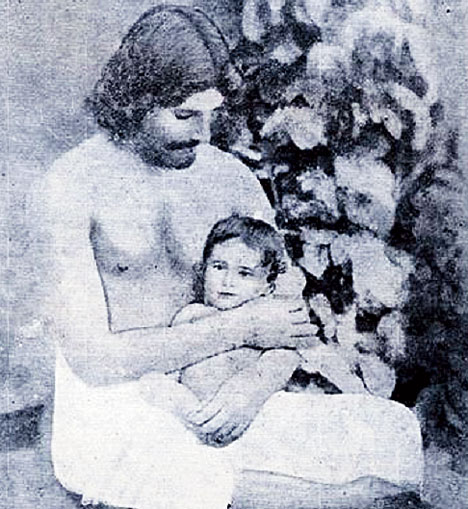 4. In the black and white picture to the left is a young Tagore. Who is on his lap?