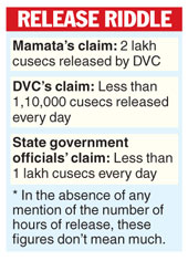 While Mamata quoted a figure of 2 lakh cusecs, state government officials said the DVC released less than 1 lakh cusecs of water on average in the past few days.